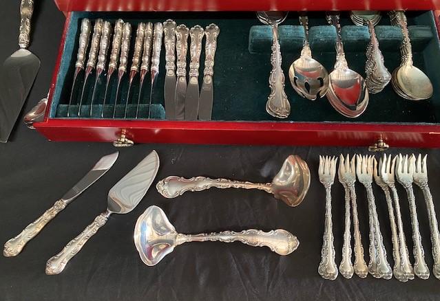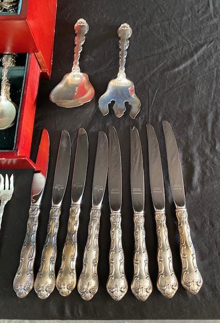 Estimated 196.97oz with stainless steel weight removed. Monogramed "SR". With case. Auction Estimate: $4000-$4500. Estimated weight of lot: 15lbs. Measurement: 19"L x 11 1/2"D x 6"H