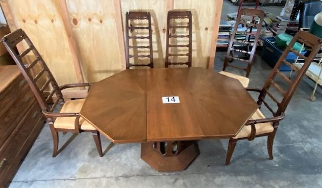 LOT#L14: Harvey Probber Style Table & 5 Chairs with Leaf