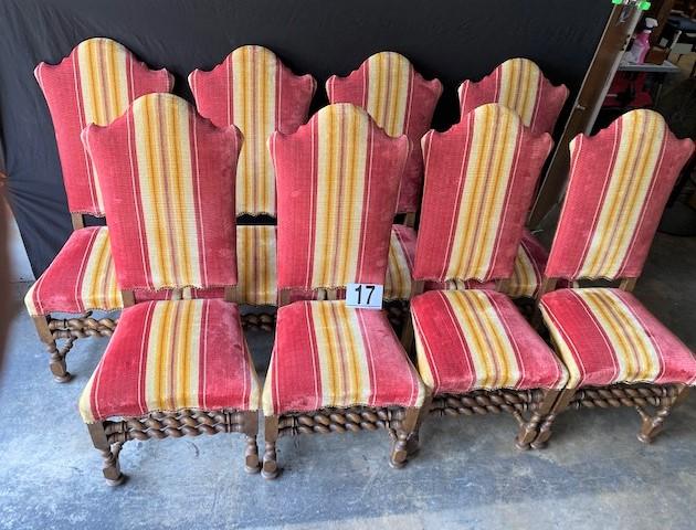 Believed to be walnut. 8 chairs total. Measurement: 20 1/2" (to seat) | 48" (to top of back)