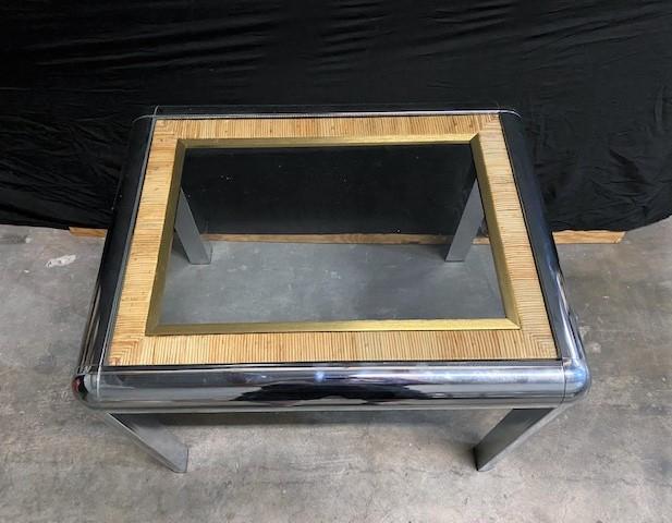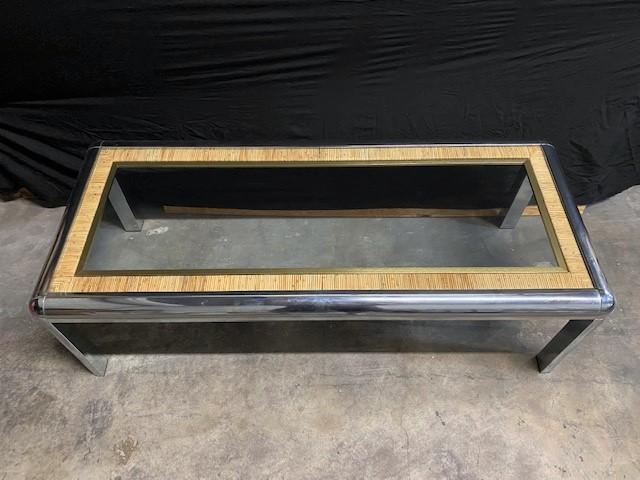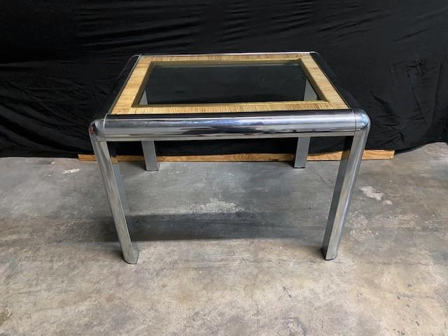 LOT#L23: Mid-Century Chrome & Rattan Tables
