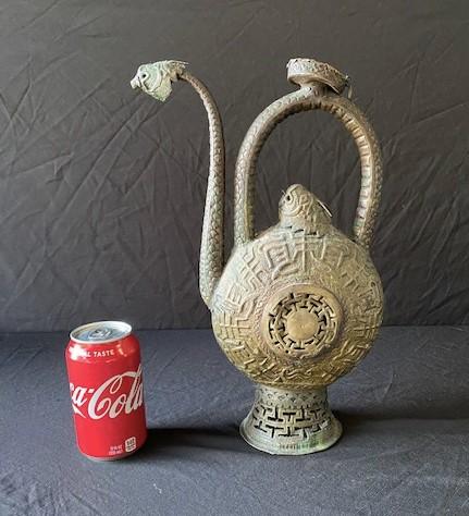 Believed to be Ottoman or Tibetan. Minimal damage and slightly out-of-line at base. Estimated weight of lot: 5 lbs. Measurement: 14"H x 8"W x 5"D