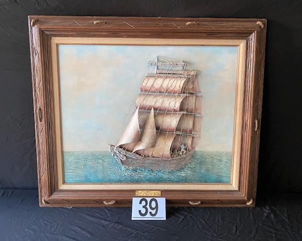"Under Full Sail in the Gulf of Mexico." Three dimensional. Estimated weight of lot: 10 lbs. Measurement: 38 1/2"W x 32"H x 3"D