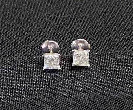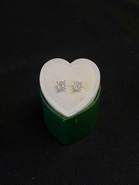 LOT#L5: Stamped 14K .70 Carat Princess Cut Diamond* Studs [1.44g]