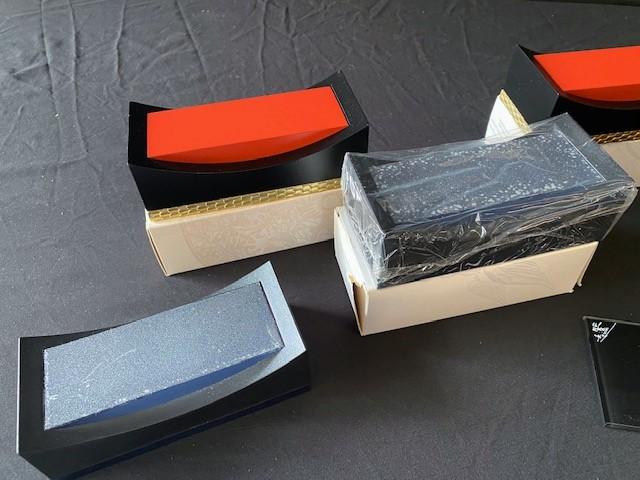 Colored, clear, and mirrored displays. Seven pieces. Estimated weight of lot: 8 lbs. Measurement: 13"L x 9"W x 3"H (all together)