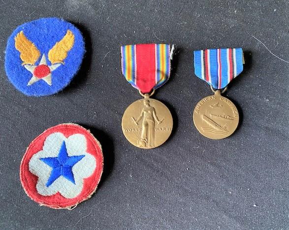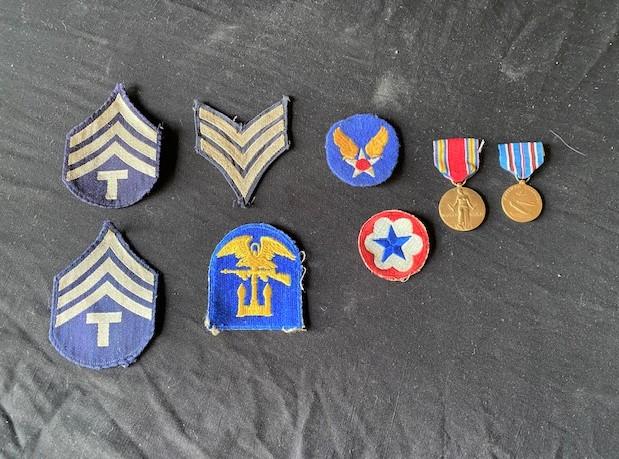 Assorted WWII era & more. Estimated weight of lot: 1lbs. Measurement: 4 1/4"H x 3"W (largest item)