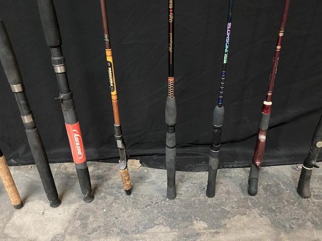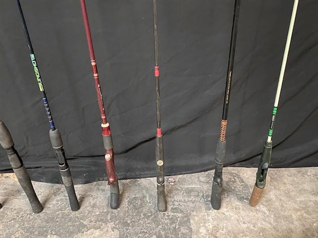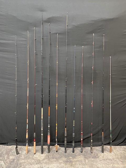 All eyes appear to be in-tacted. Includes: Fenwick, Quantum, Berkley, Bonanza, Shakespeare & Zebco. Estimated weight of lot: 10lbs. Measurement: 84"L (longest)
