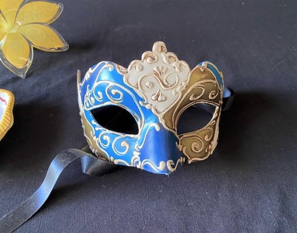 Venetian mask, Murano style bud vase, Tucci Vase. Measurement: 14"H (tallest) | 7"W (widest)