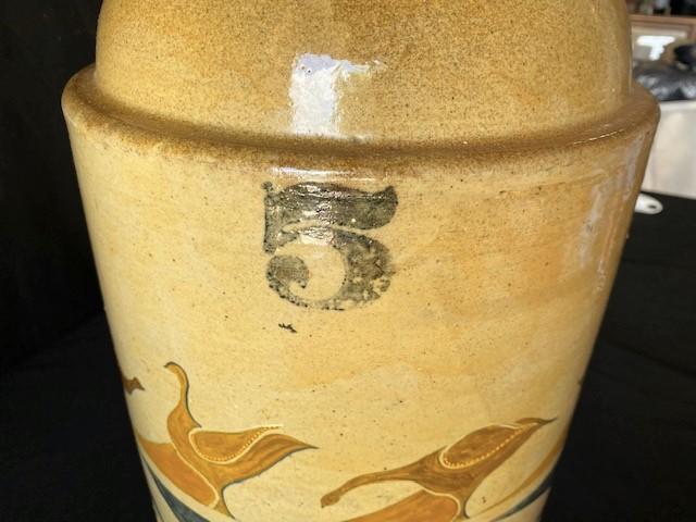 LOT#M280: Hand Painted 5gallon Jug Crock Lamp