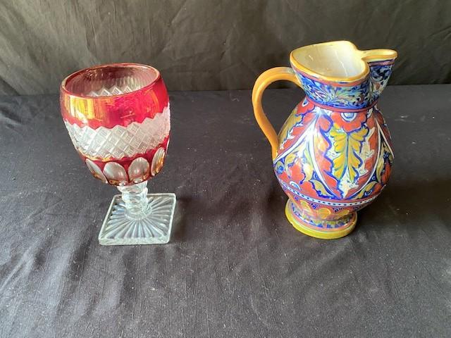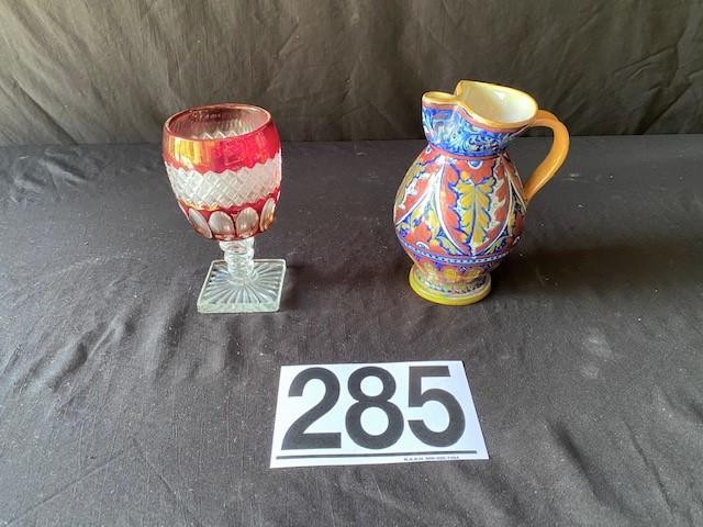 Cut to clear glass & pitcher. Measurement: 8" x 5"