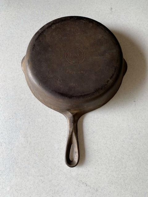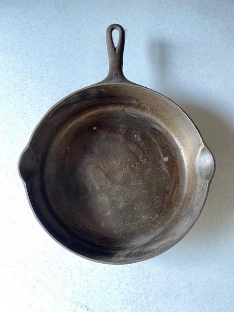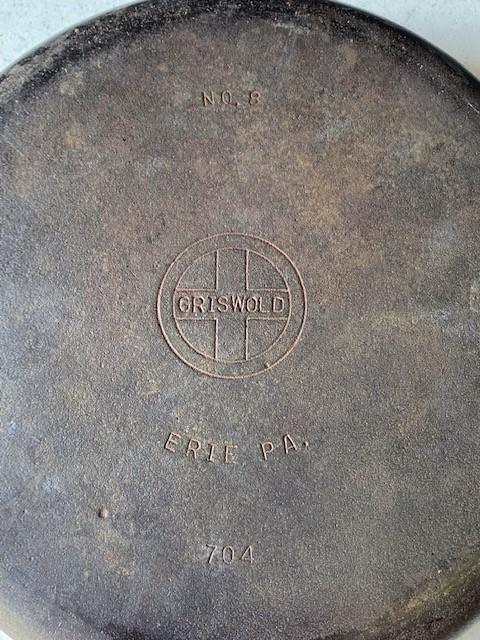 10" skillet. Number 8 (704). Estimated weight of lot: lbs. Measurement: 15 1/4"Diameter x 2"H (overall)