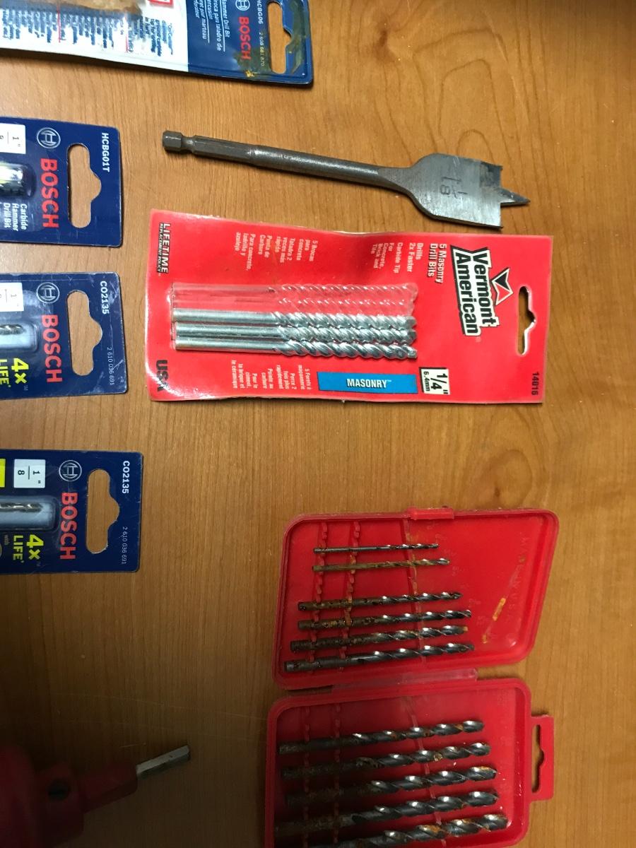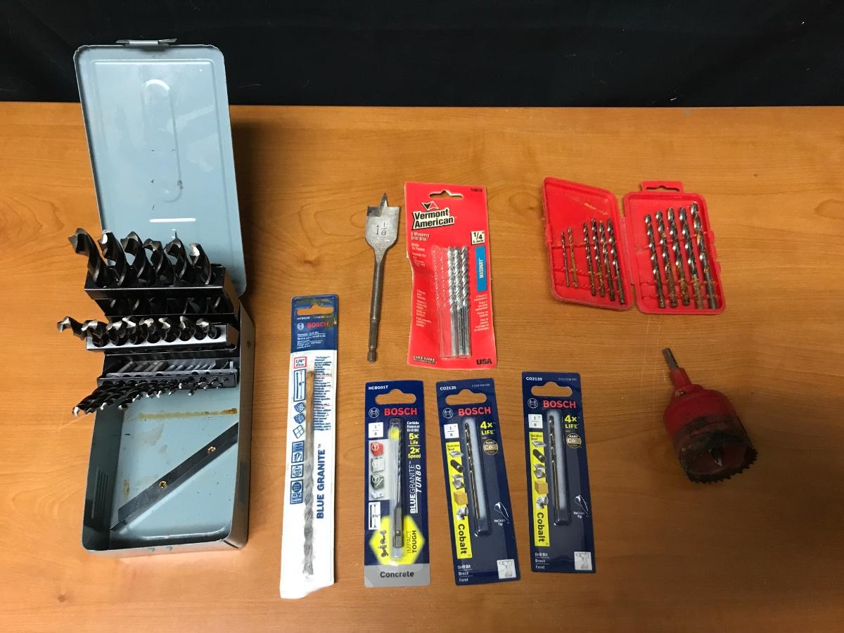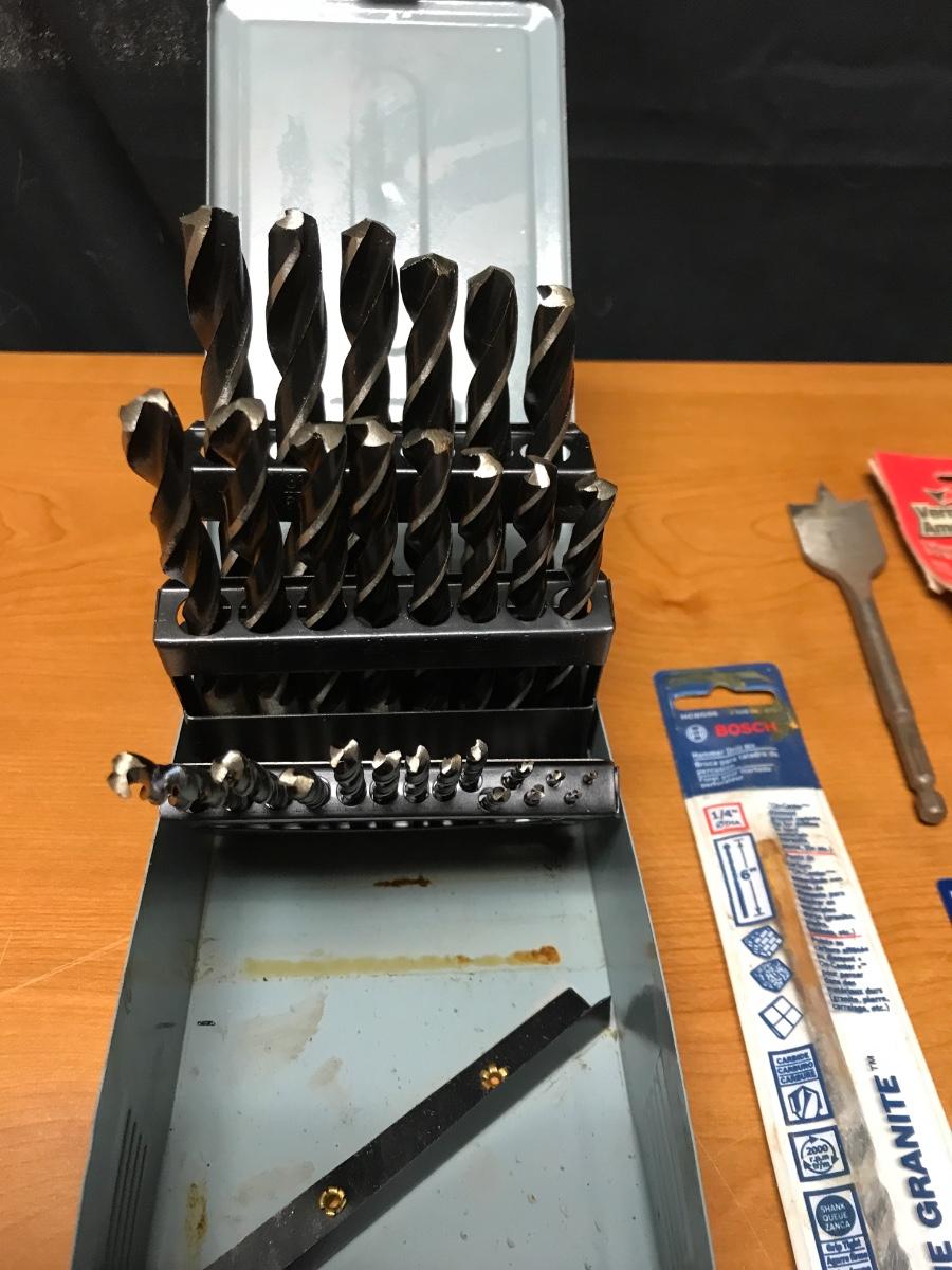 Lot of Miscellaneous Drill Bits and Kit, there is no significant damage to any of the drill bits and is in good useable condition. Check pictures for more details and for sizing.