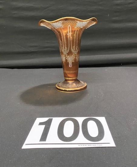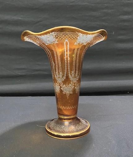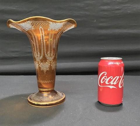 LOT#P100: Amber Cut to Clear Vase