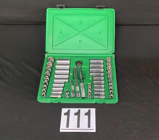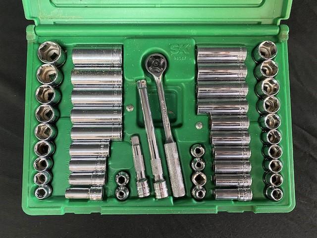 47 piece. 3/8" drive. Estimated weight of lot: 10lbs. Measurement: 13 1/2" x 10"