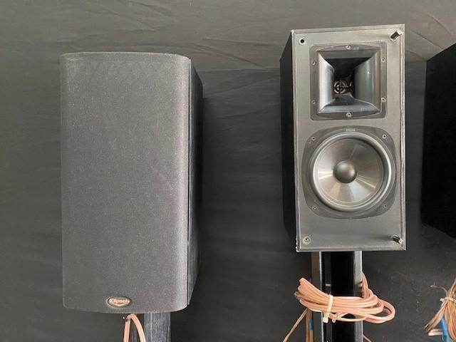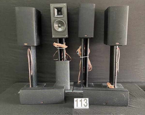 Not tested. Sold as is. Pair of SB3, pair of SB2 & pair of SC1. Speaker stands not factory. Speakers sit on stands. One speaker cover needs new facenter. Estimated weight of lot: 40lbs. Measurement: 43"H x 18" (tallest speaker on stand)
