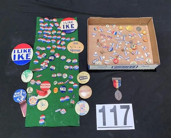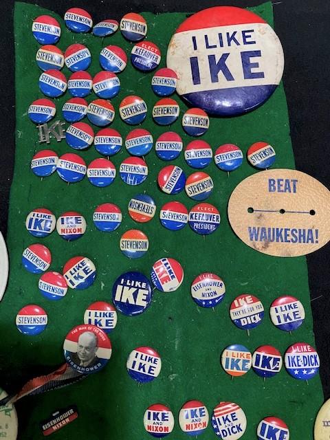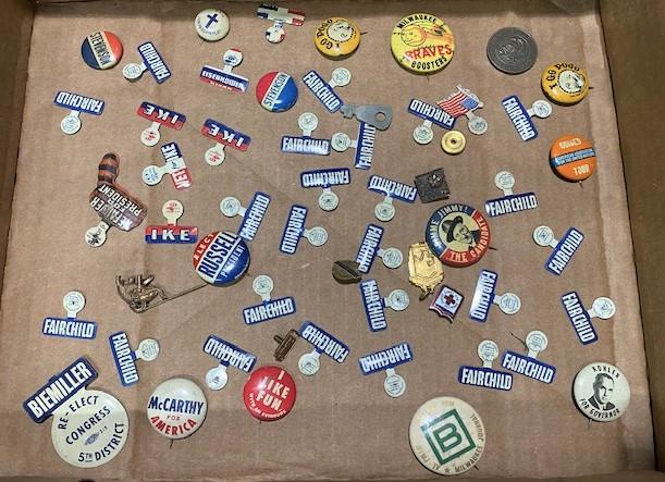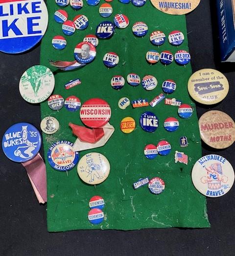 Milwaukee Braves, I Like Ike & more. Estimated weight of lot: 3lbs. Measurement: 12" x 9" x 3"