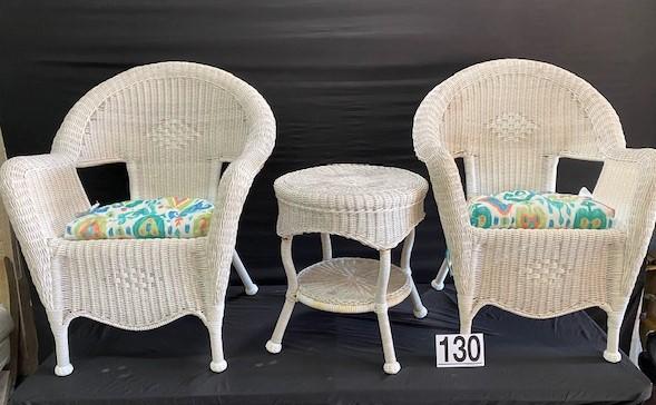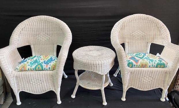 LOT#P130: Wicker Chairs & Side Table