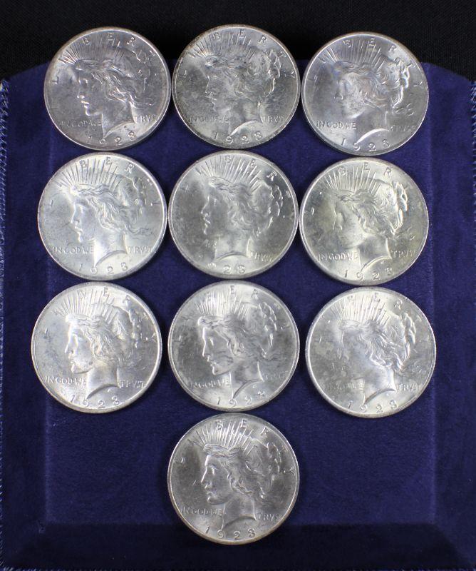 LOT#P176: 1923 Peace Dollar Half-Roll Lot #3