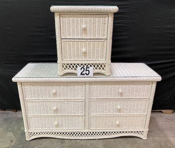 LOT#P25: Unmarked Wicker Dresser & End Table
