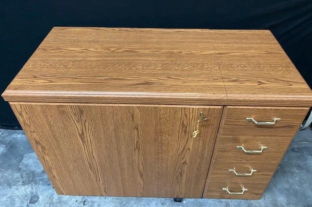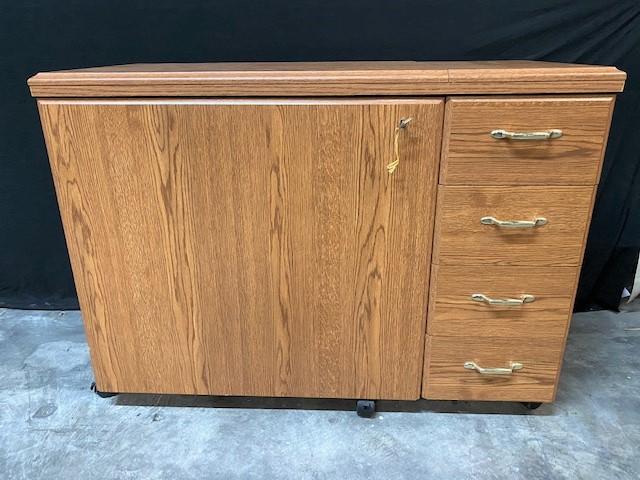 LOT#P264: Horn Furniture, Sunset Oak Sewing Cabinet