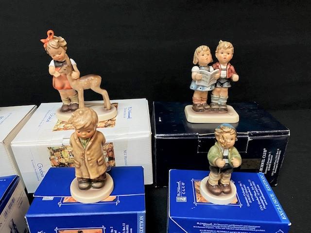 One Hummel missing the flag. Estimated weight of lot: 5lbs. Measurement: 8"H x 5 1/2"W x 4"D (largest Hummel box)