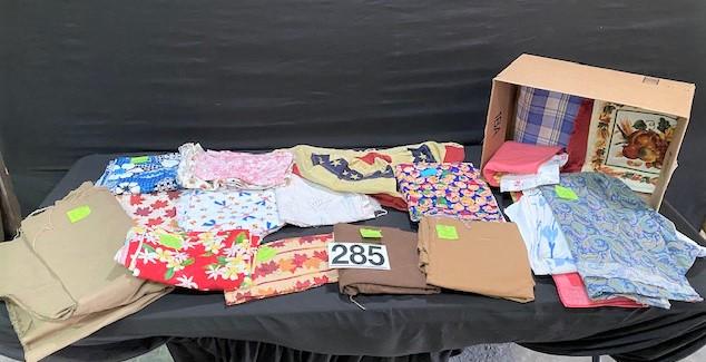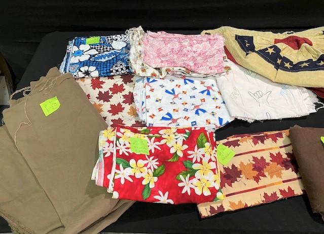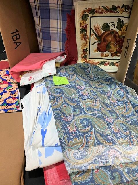 Brown, plaid, flower & more. Estimated weight of lot: 20lbs. Measurement: 19" x 15" x 12" (largest item)