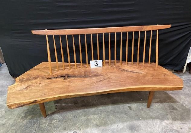 LOT#P3: George Nakashima Conoid Bench Signed & Dated July 1985