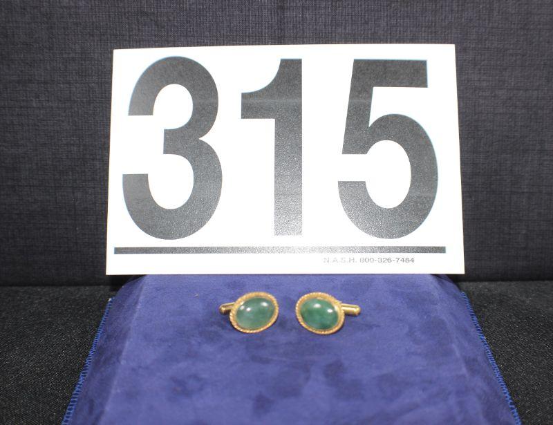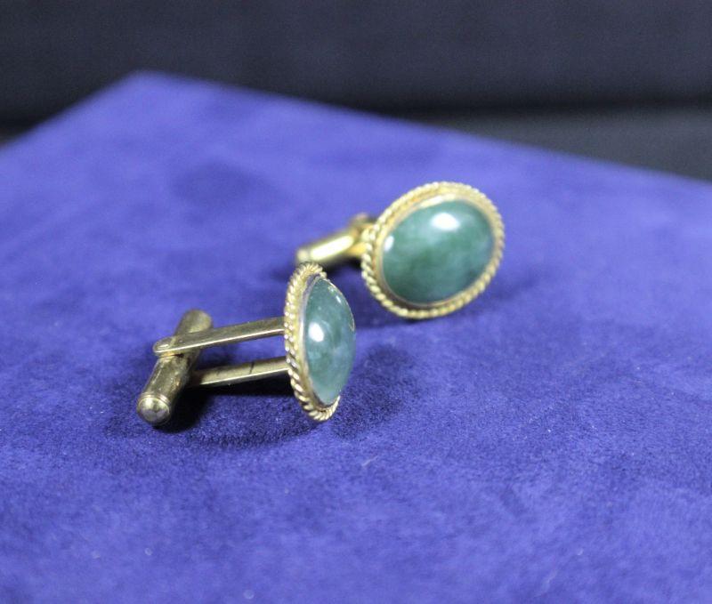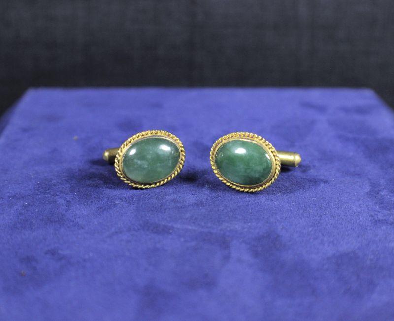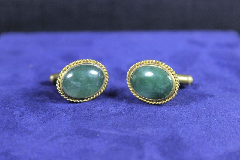 LOT#P315: Stamped 14K & Jade Cufflinks [8.4g]