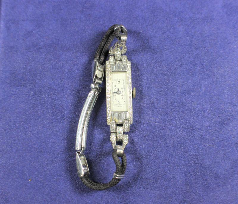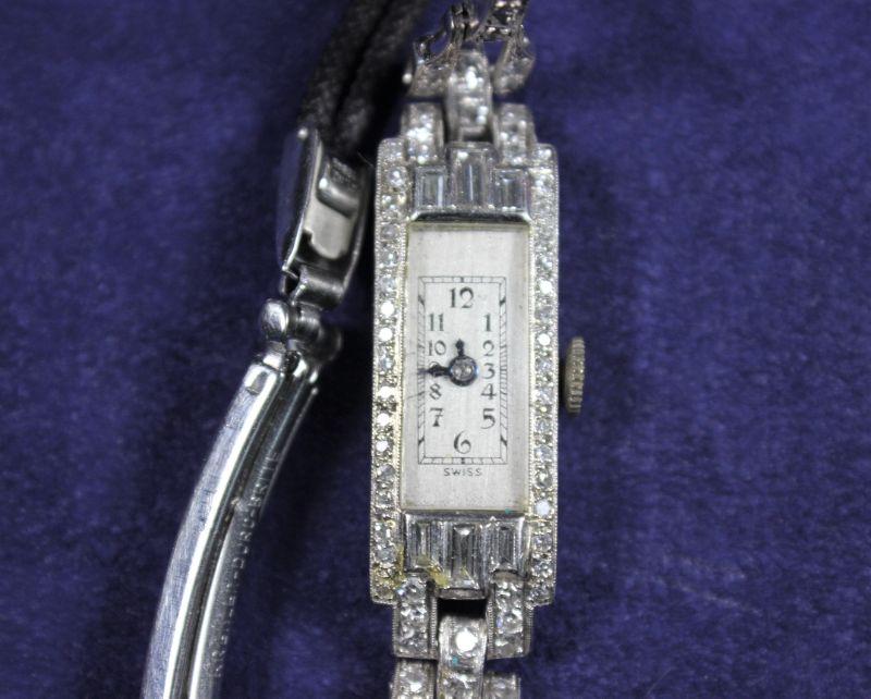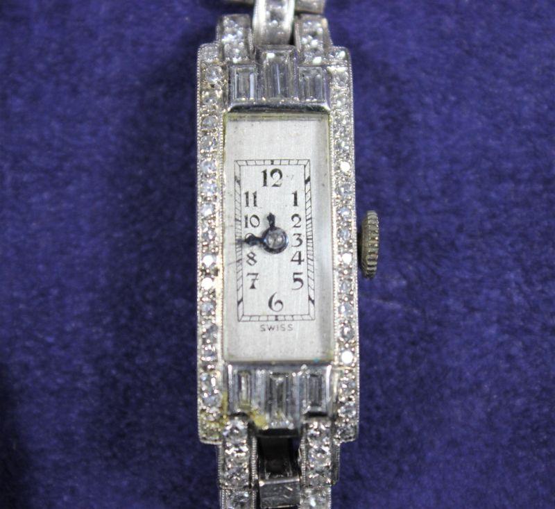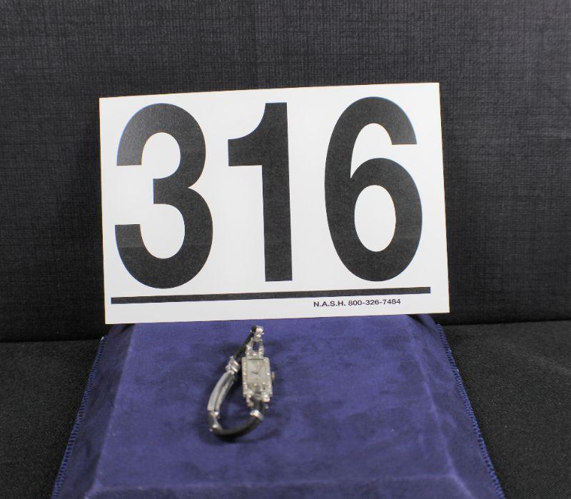 LOT#P316: Stamped Platinum & Diamond Margo Deco Watch