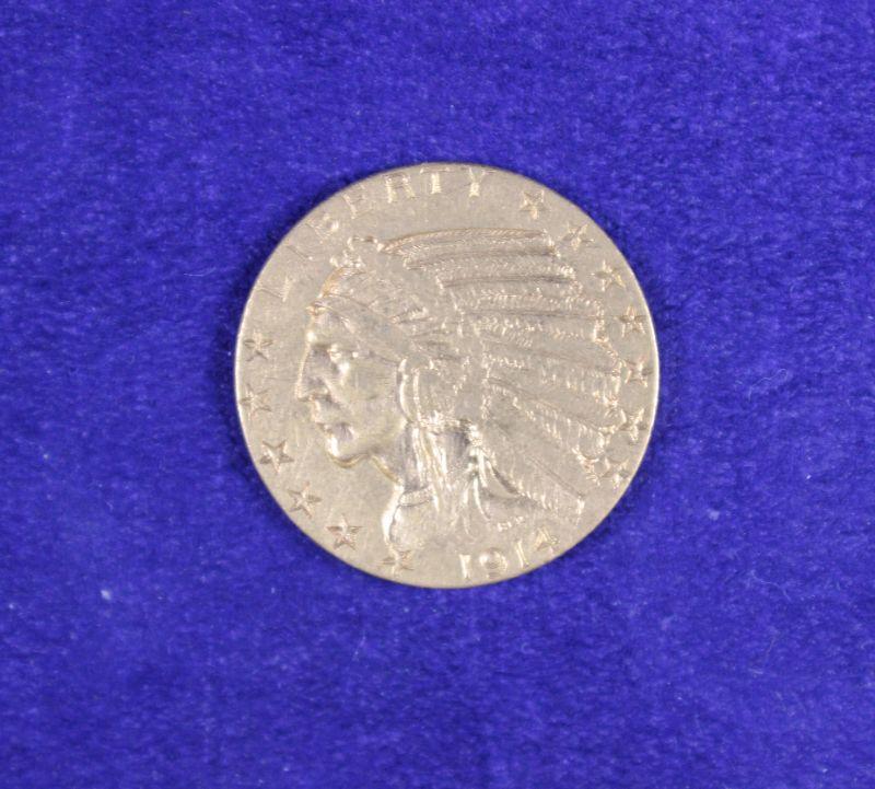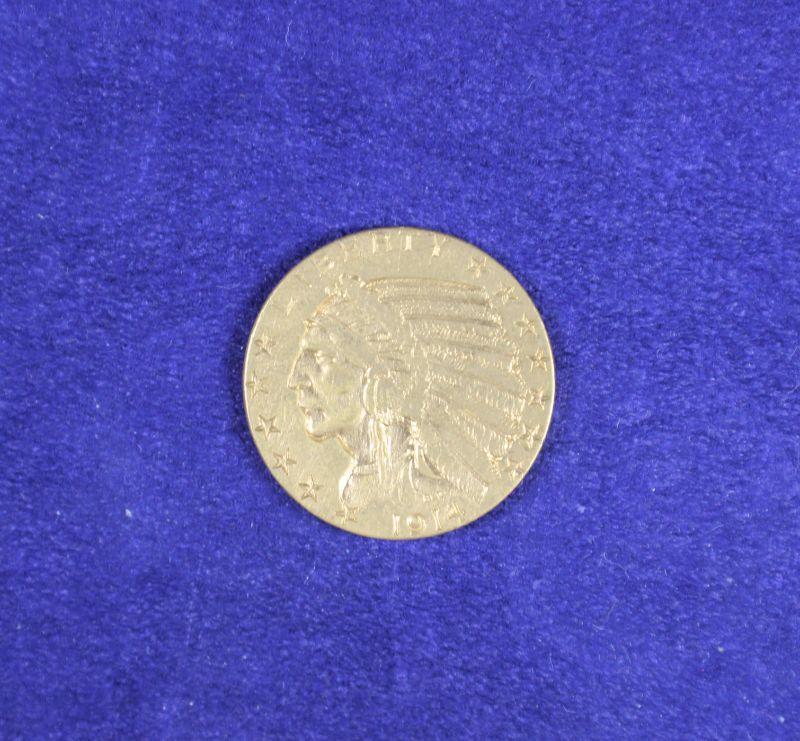 LOT#P34: 1914 $5 Indian (Gold 8.4 grams)