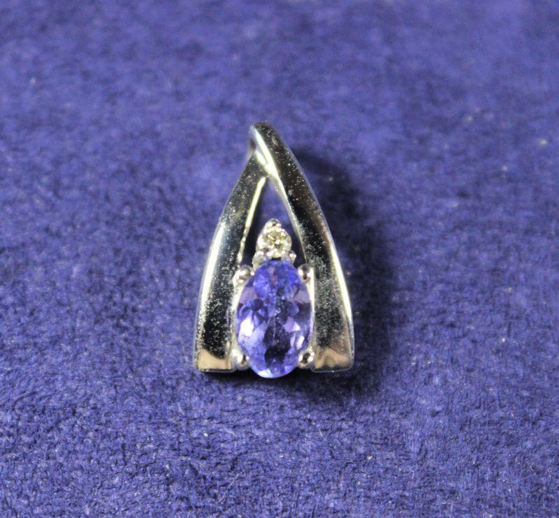 LOT#P379: Stamped 14K Believed to be Tanzanite Pendant [0.9g]