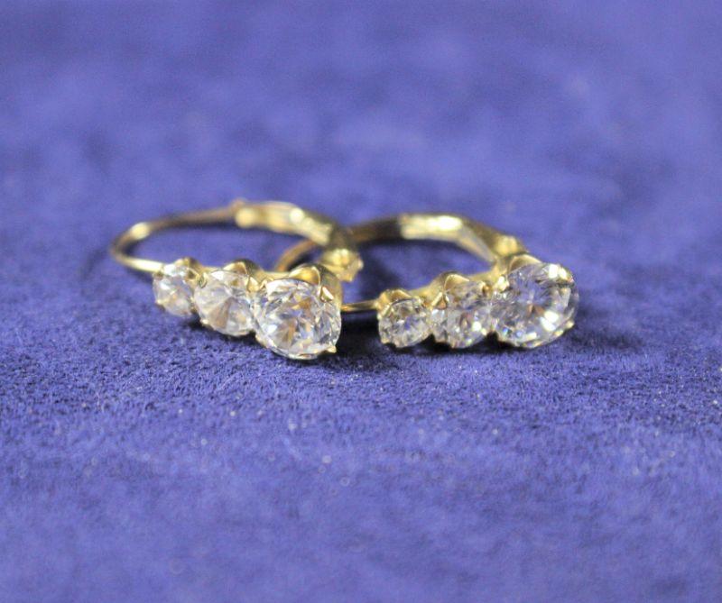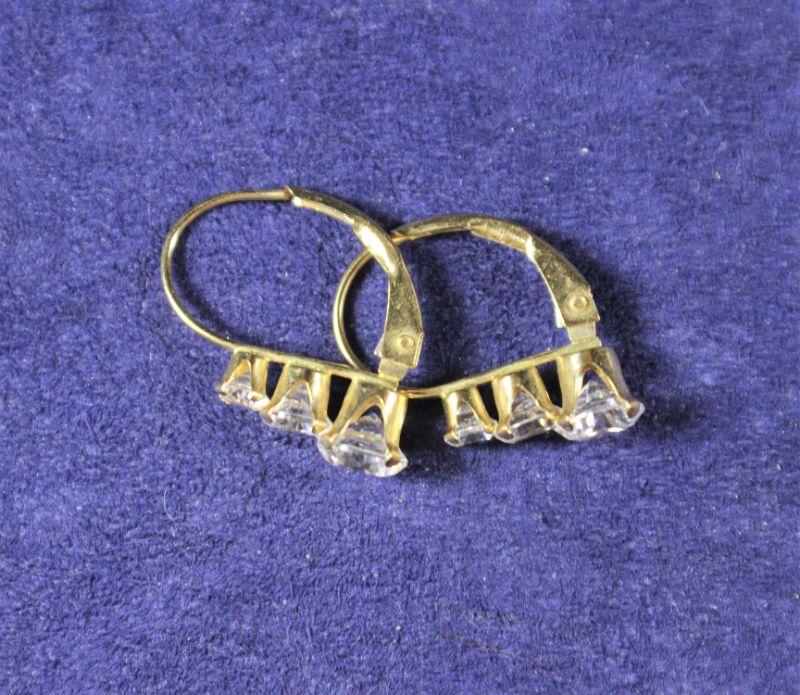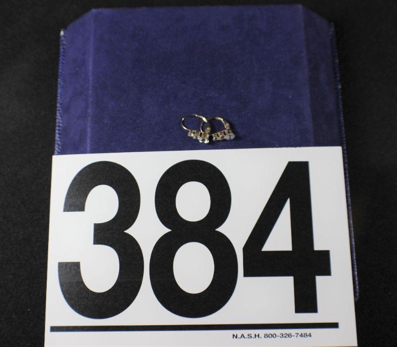 LOT#P384: Stamped 10K Gold Earrings w/ Clear Stones [1.3g]