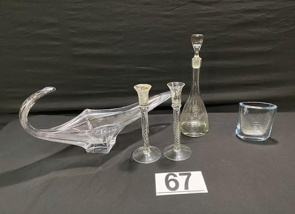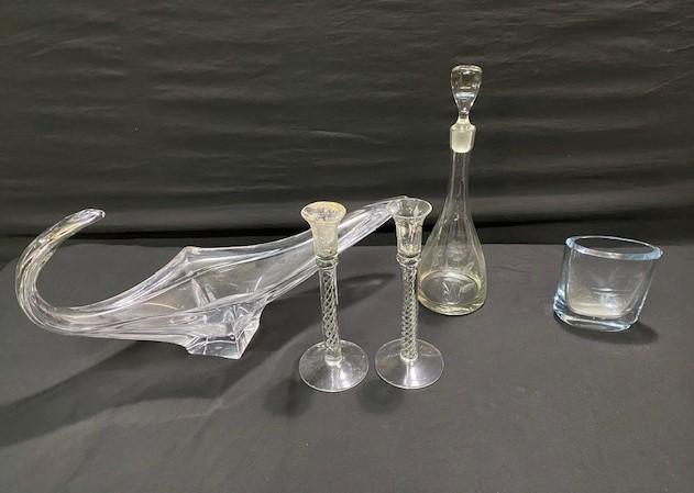 Includes: Decantur, vase, candlesticks & centerpiece. Some signed. Measurement: 23" (longest item) | 15 1/2" (tallest item)