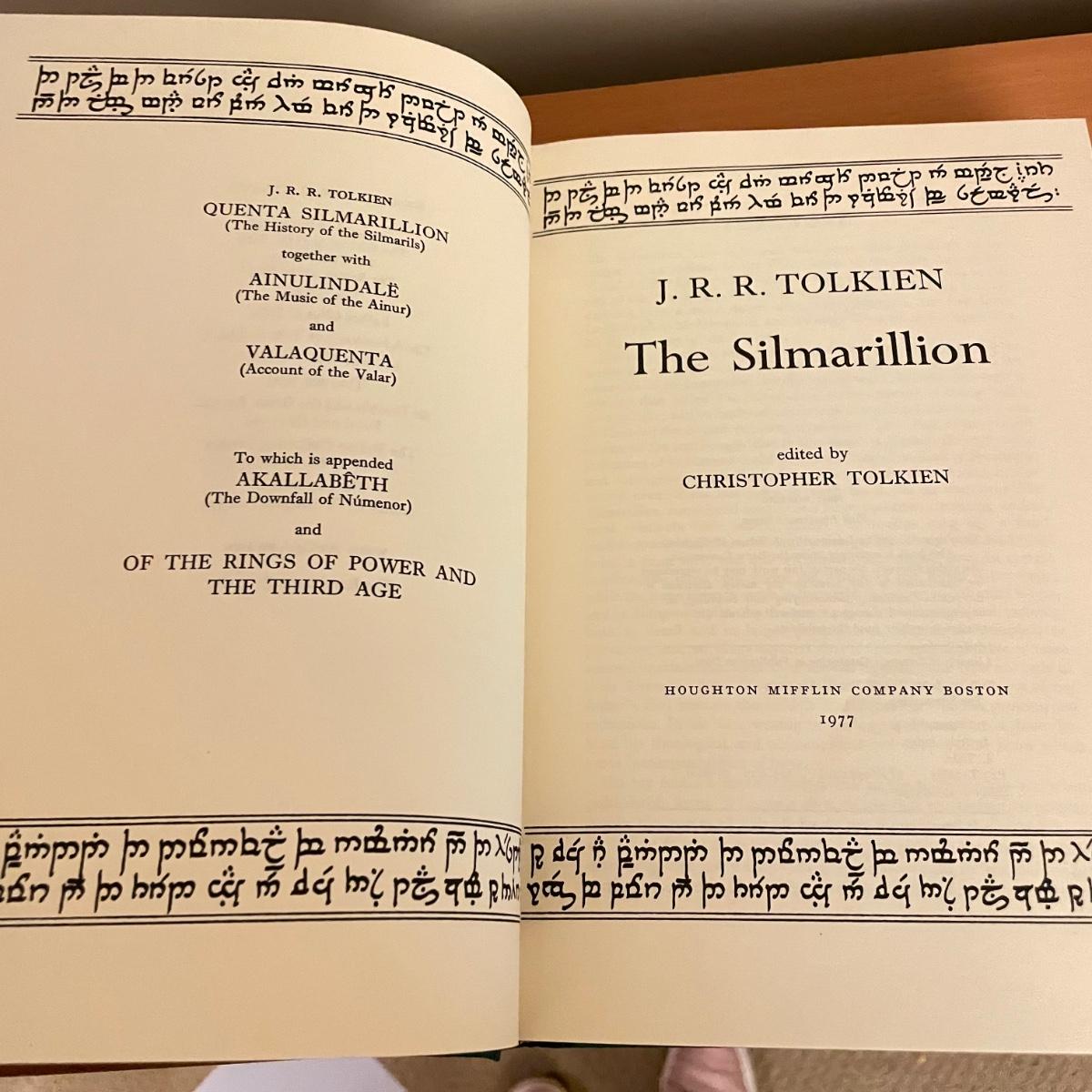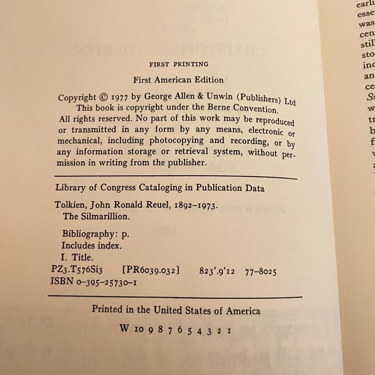 The Silmarillion doesn’t not have a dust jacket and has a gift inscription inside.