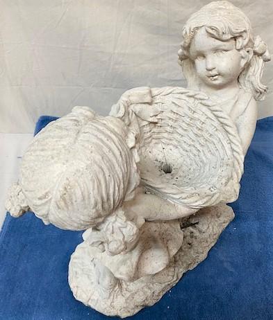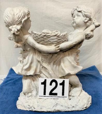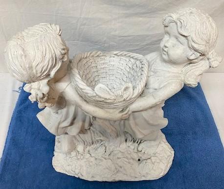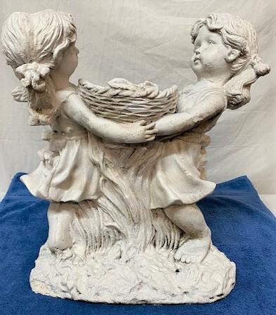 LOT#R121: 2 Girls Holding Basket Yard Statue