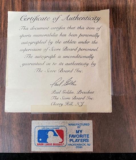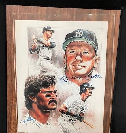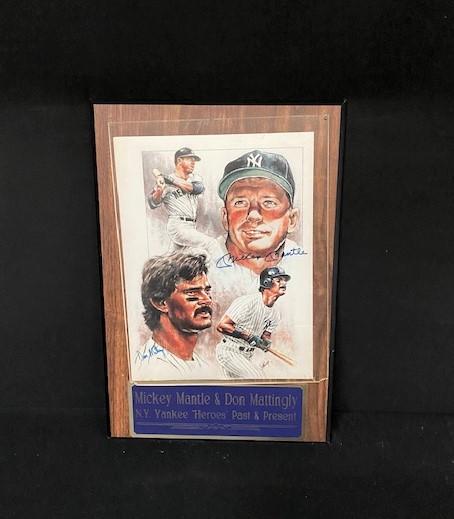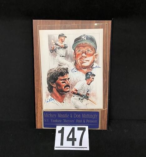 Allegedly signed by Mickey Mantle & Don Mattingly. Crimson Estate Services makes no claims to authenticity. Needs new screws. Estimated weight of lot: 10lbs. Measurement: 20 1/2"L x 13 1/2"W