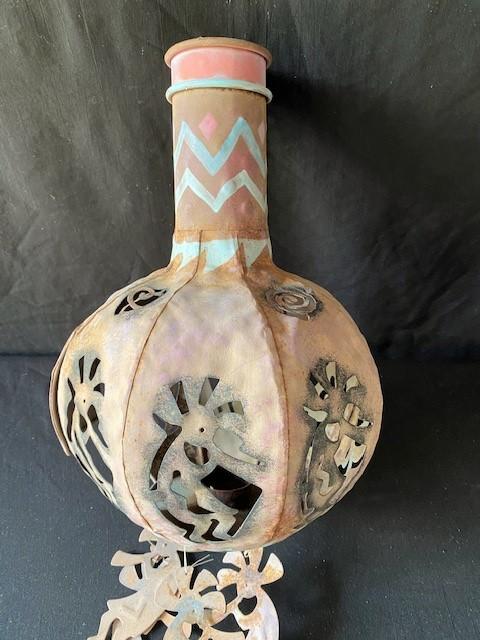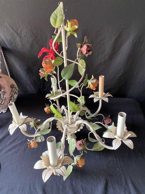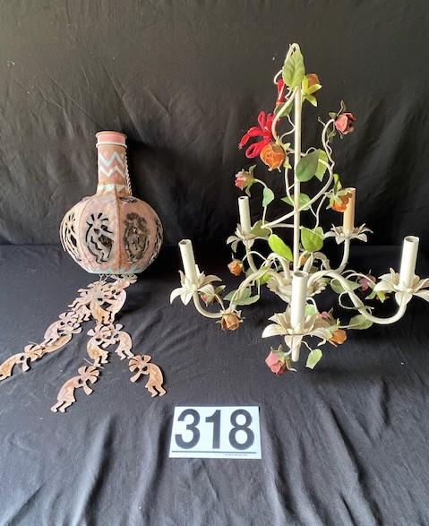 Painted chandelier. Outdoor votive holder. Measurement: 22" x 20" (tallest & widest)