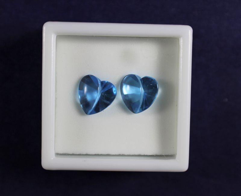 LOT#R389: Pair of 6.50carat Blue Topaz Fancy Heart-Cut Stones