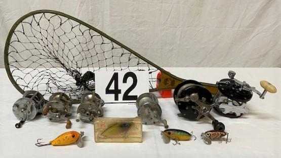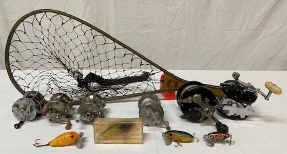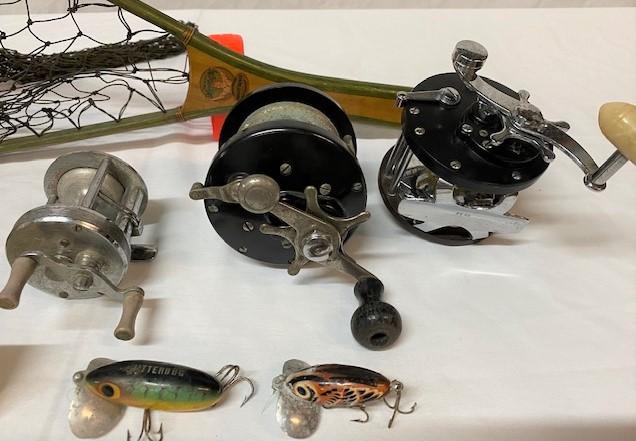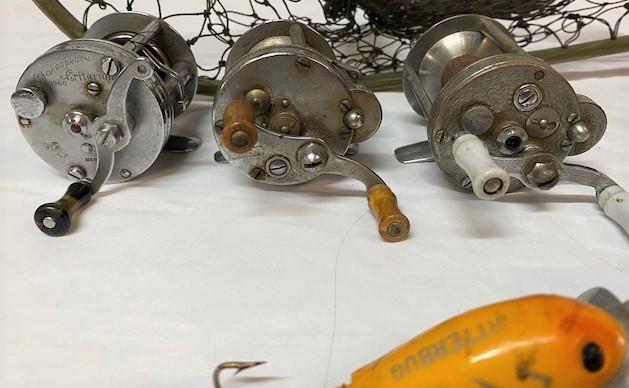 Pen, Jaleoxe, JC Higgins, Summit, Skilkast, & Shakespeare reels. Fred Arbogast lures, SouthBend net