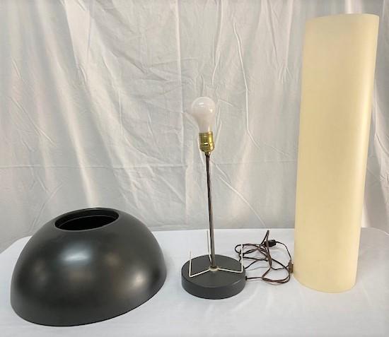 Metal shade & plastic case. Measurement: 26"H x 14 1/2"diameter
