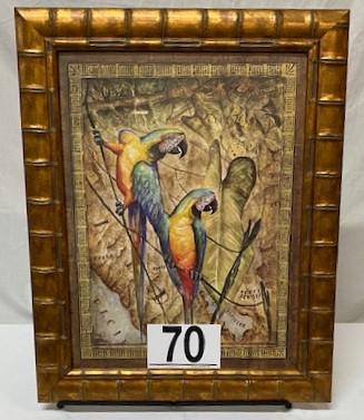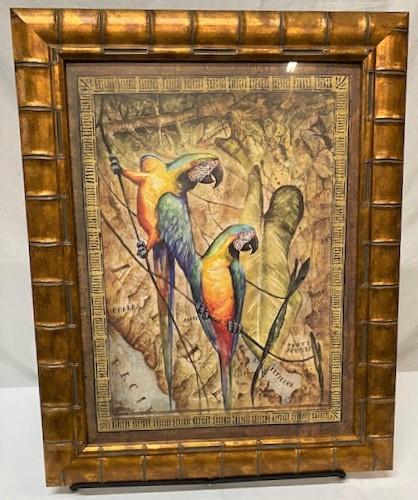 LOT#R70: South American Style Parrot Print with Gilt Frame