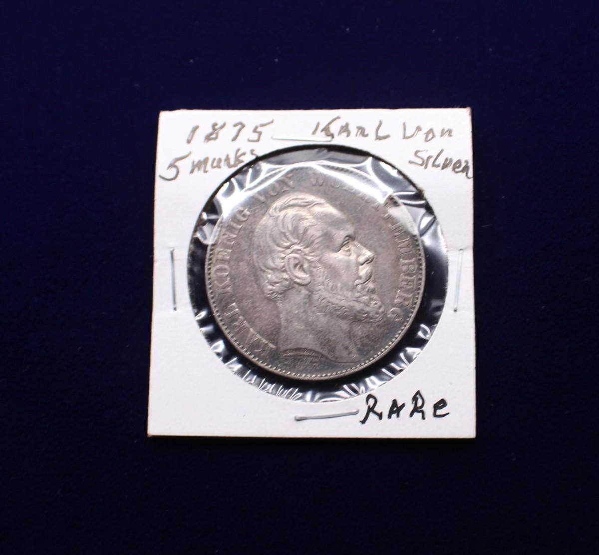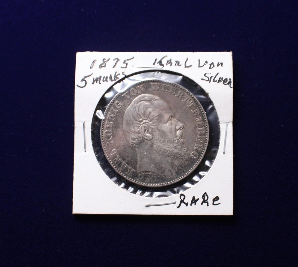 LOT#R88: 1875 Karl Von Wuerttemberg 5 Mark