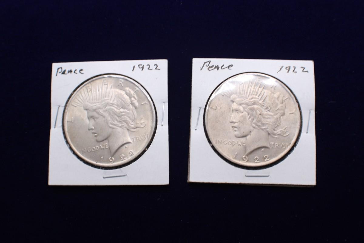 1922 Peace Dollar. You are bidding on two (2) Peace Dollars