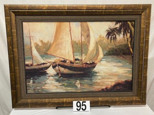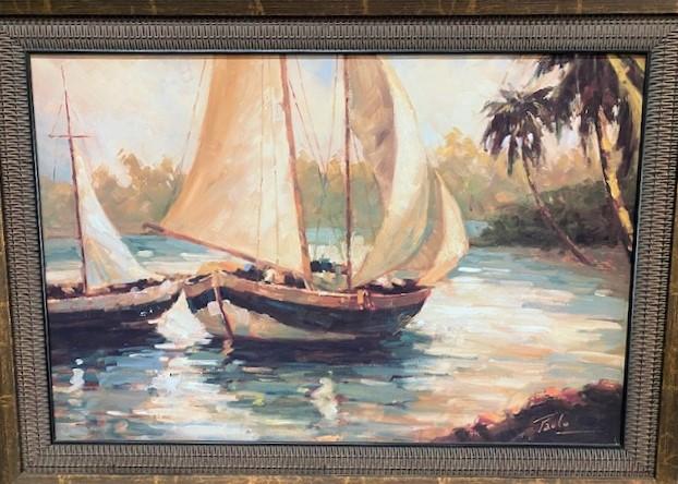 Believed to be giclee. Coastal style frame. Measurements: 45"W x 34"H.