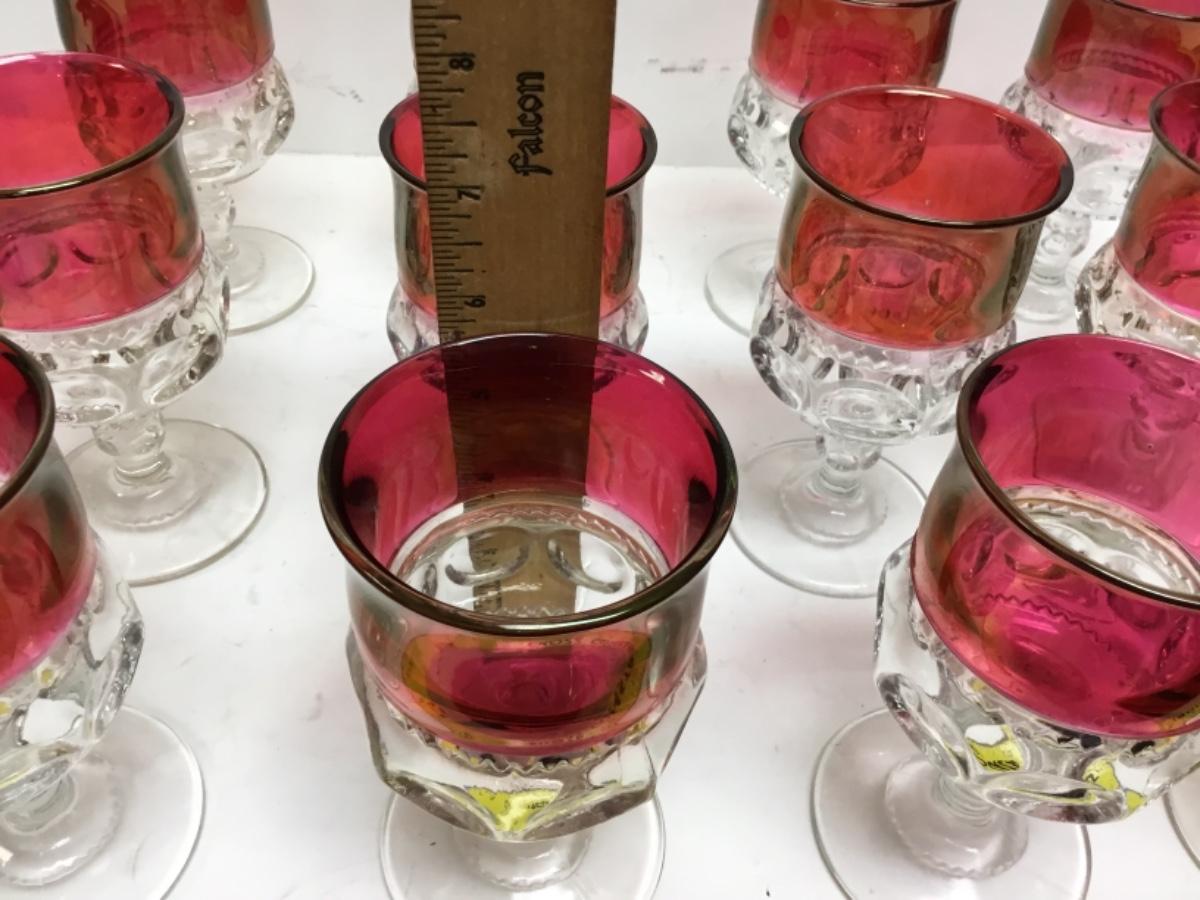 Set of 12 Kings Crown Ruby Cranberry Red Thumbprint Goblet Drink Glasses