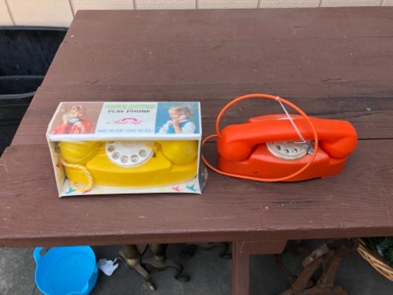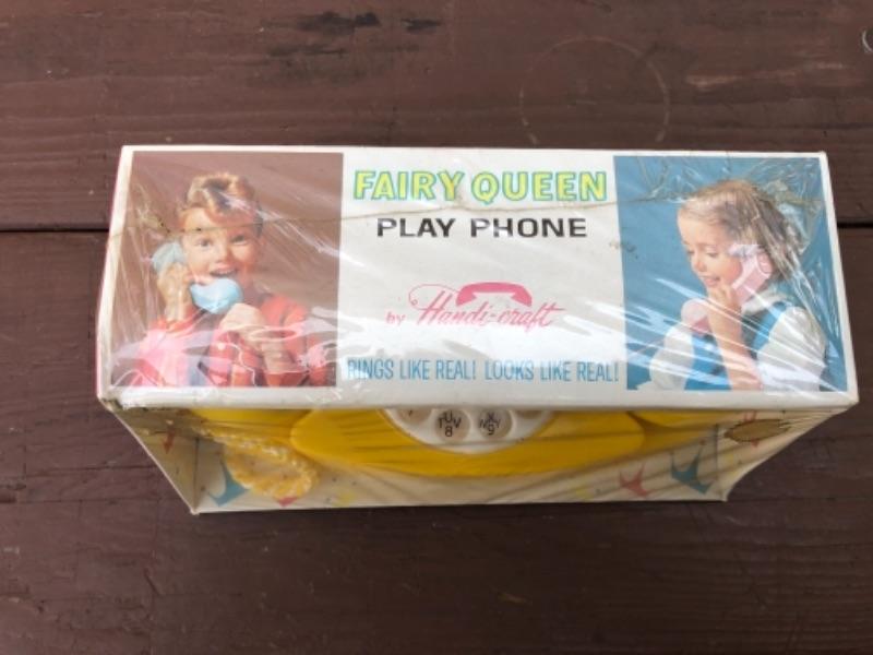 Lots 202 & 442: Vintage Fairy Queen Play Phone: Yellow, Boxed, Made by Handi-Craft & Orange Princess Toy Phone: Plastic. 1960’s -70’s