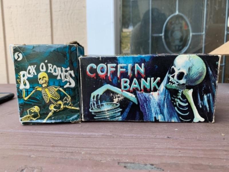 Lots 463 & 439: Coffin Bank: Wind-Up, Mechanical, Everlast Toys, 1970’s, Box O’Bones: A.I.C. Toys, No. 88110, Boxed GROUPED 439