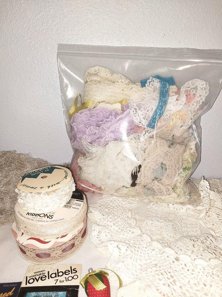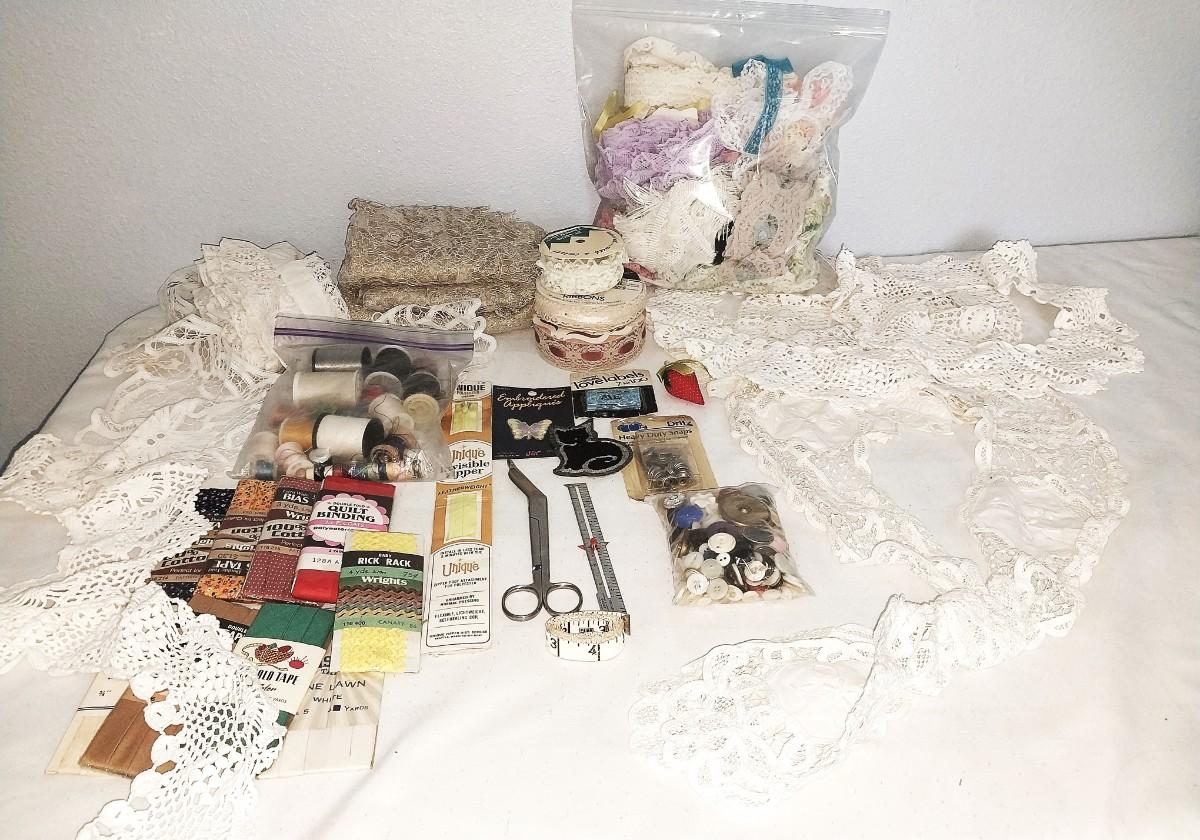 LOTS OF LACE TRIM & LARGER PIECES AND SEWING NOTIONS