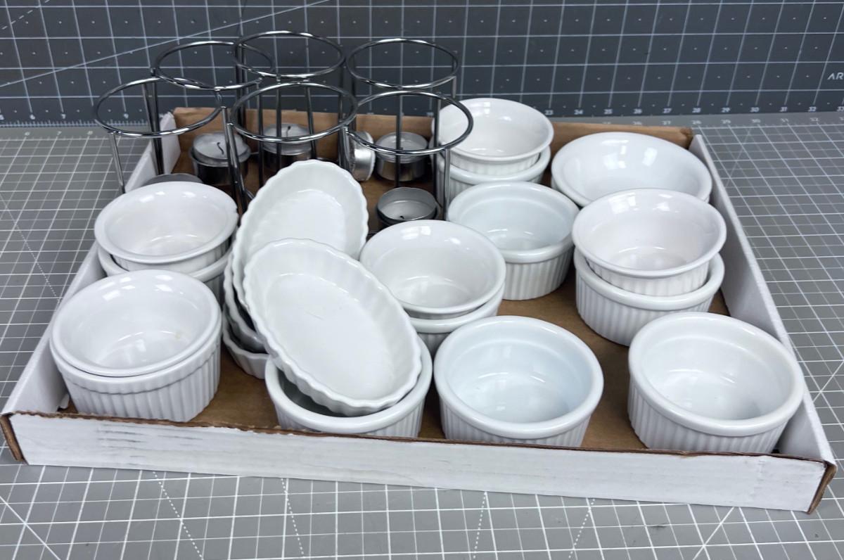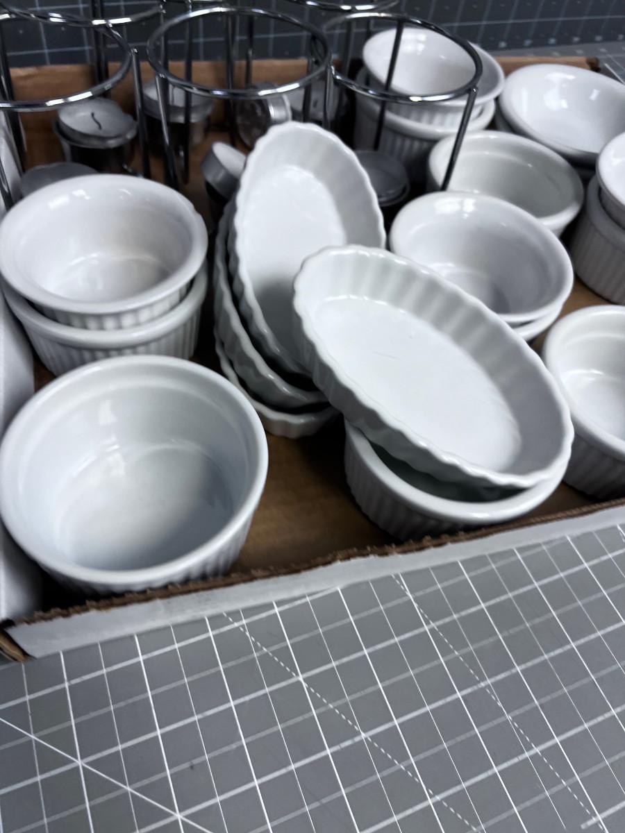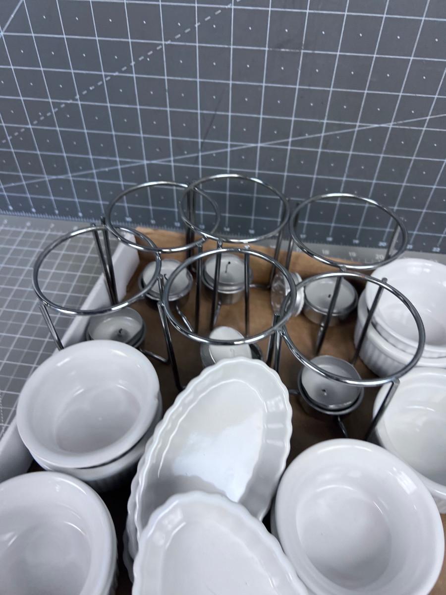 Lots of Ramekins with Votive Chaffing Candle Heaters (Crab / Lobster Butter)