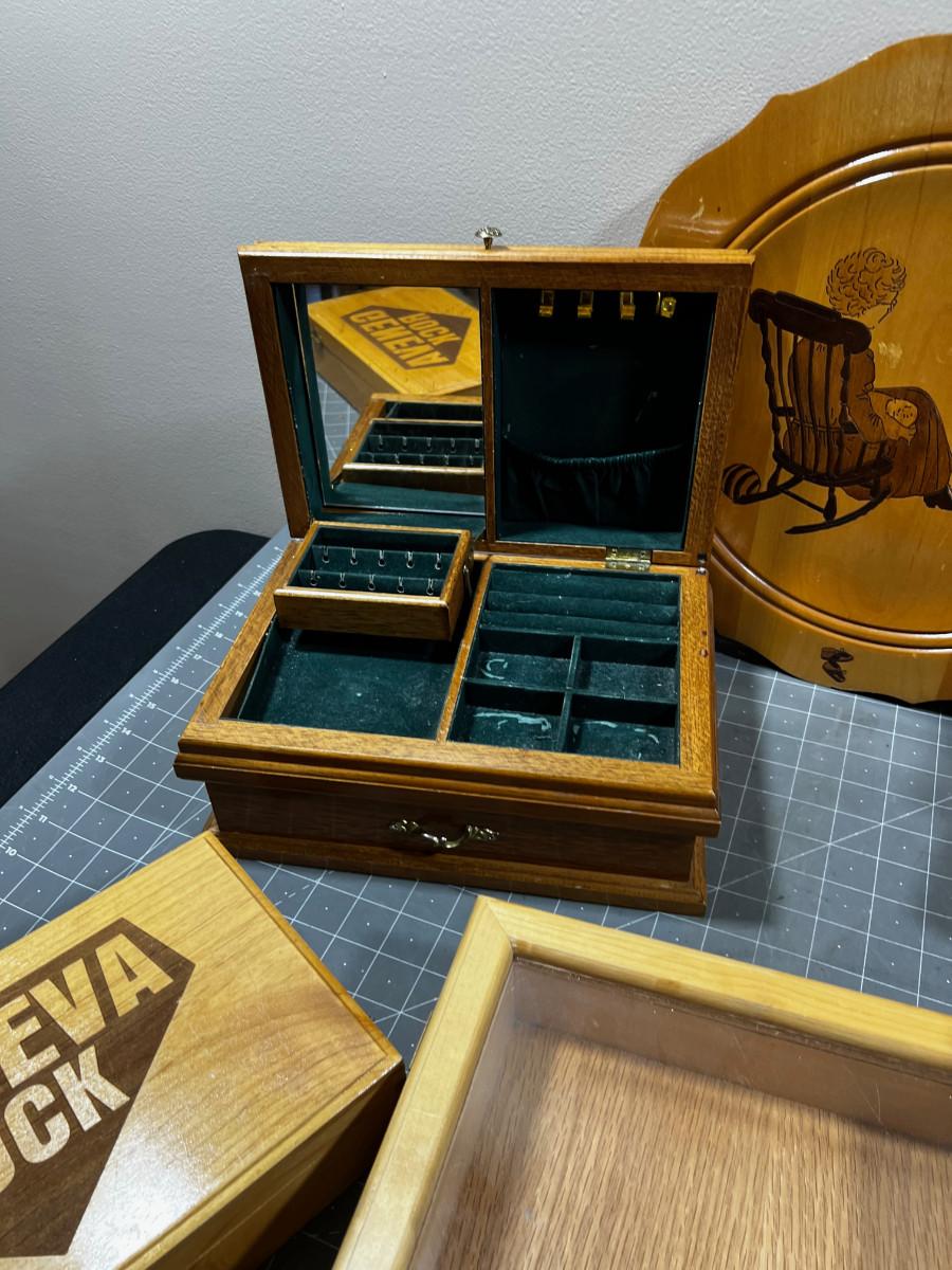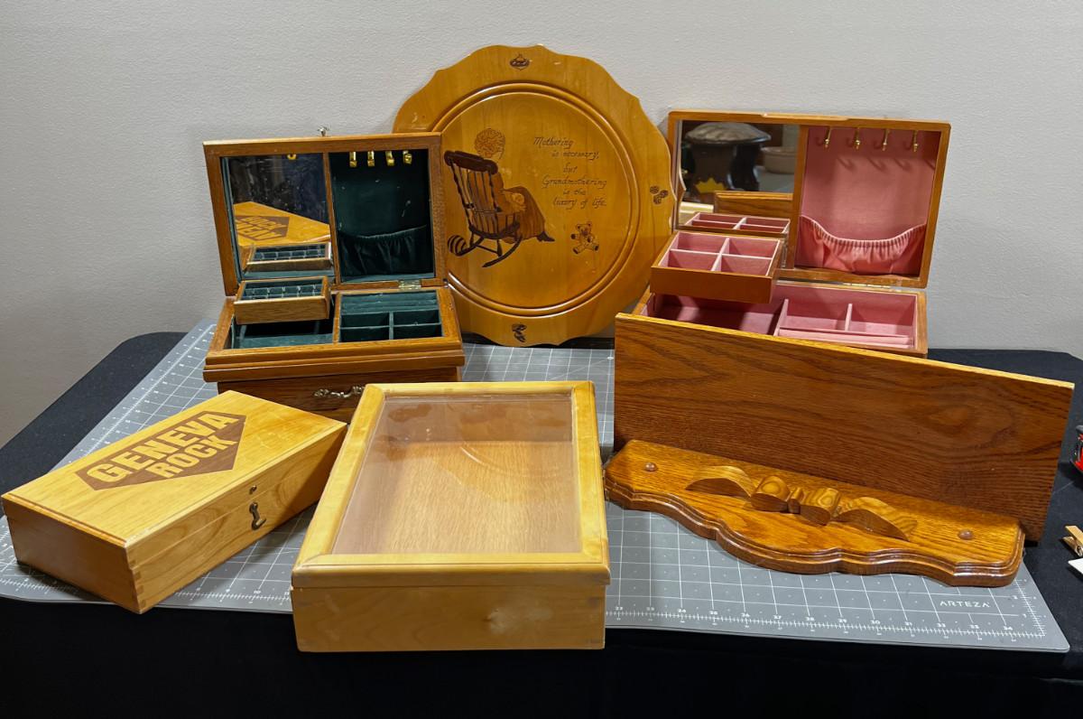 Lots of Wood Jewelry Boxes, Tray and Shadow Box etc.