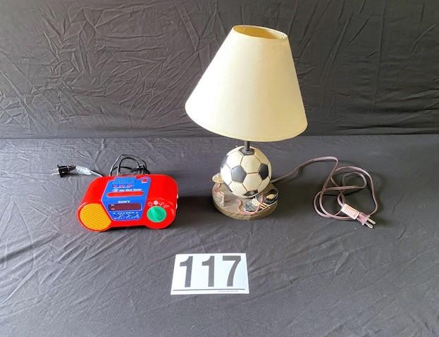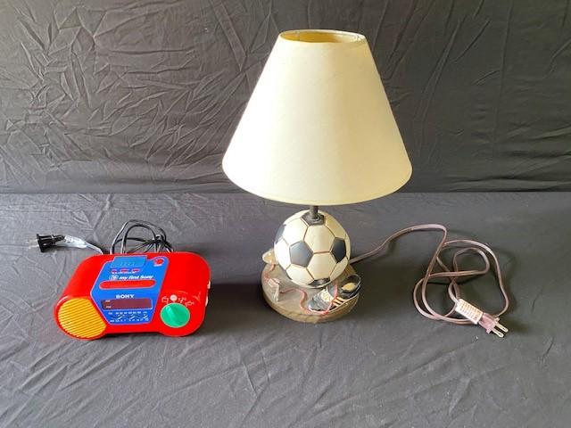 Includes soccer lamp and My First Sony alarm clock radio. Both working at time of cataloging.